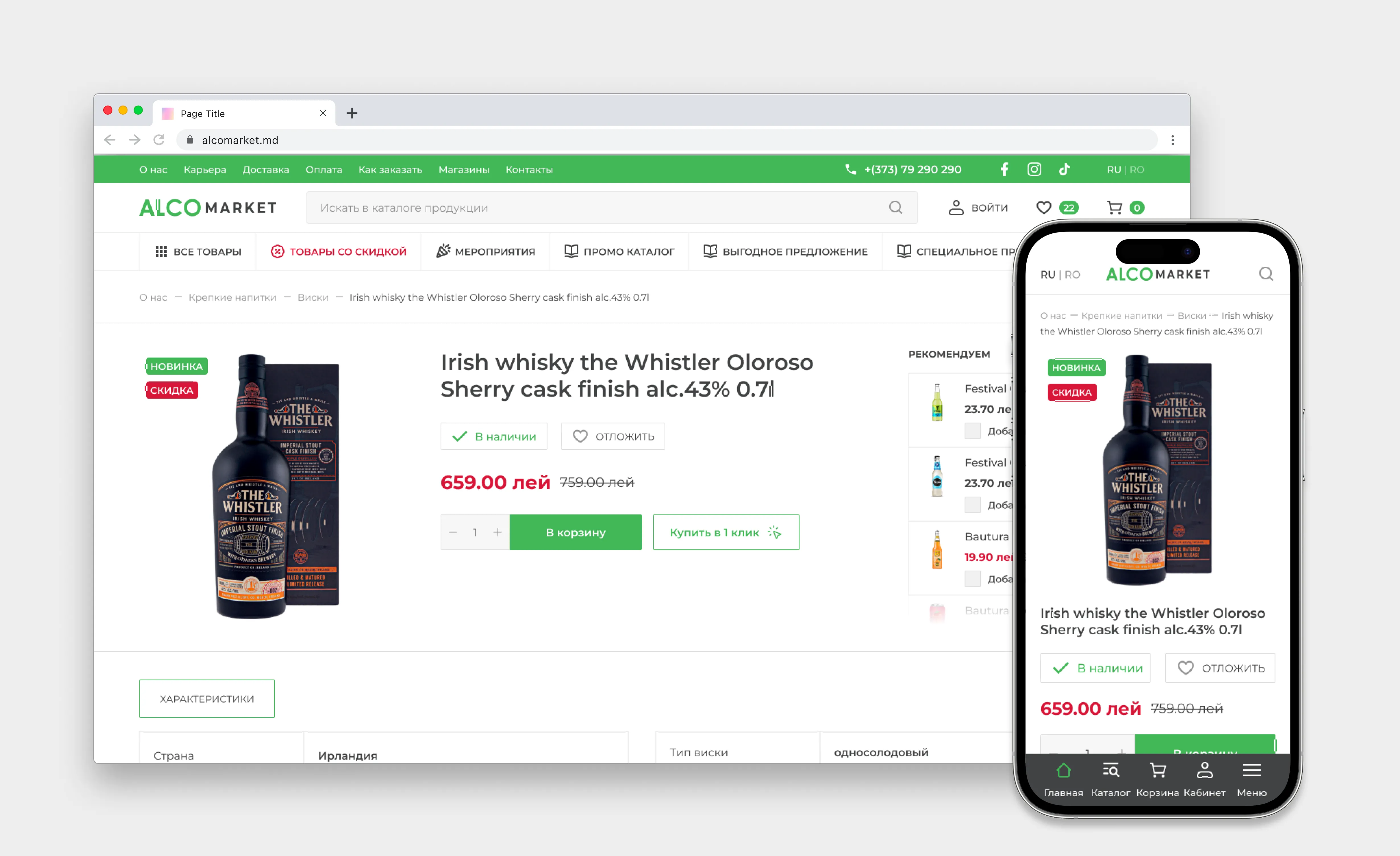 When we began developing the online store for Alcomarket, the company already had an active website. Therefore, our main focus was on increasing performance speed, improving usability, and creating a modern and comfortable interface for both customers and employees.