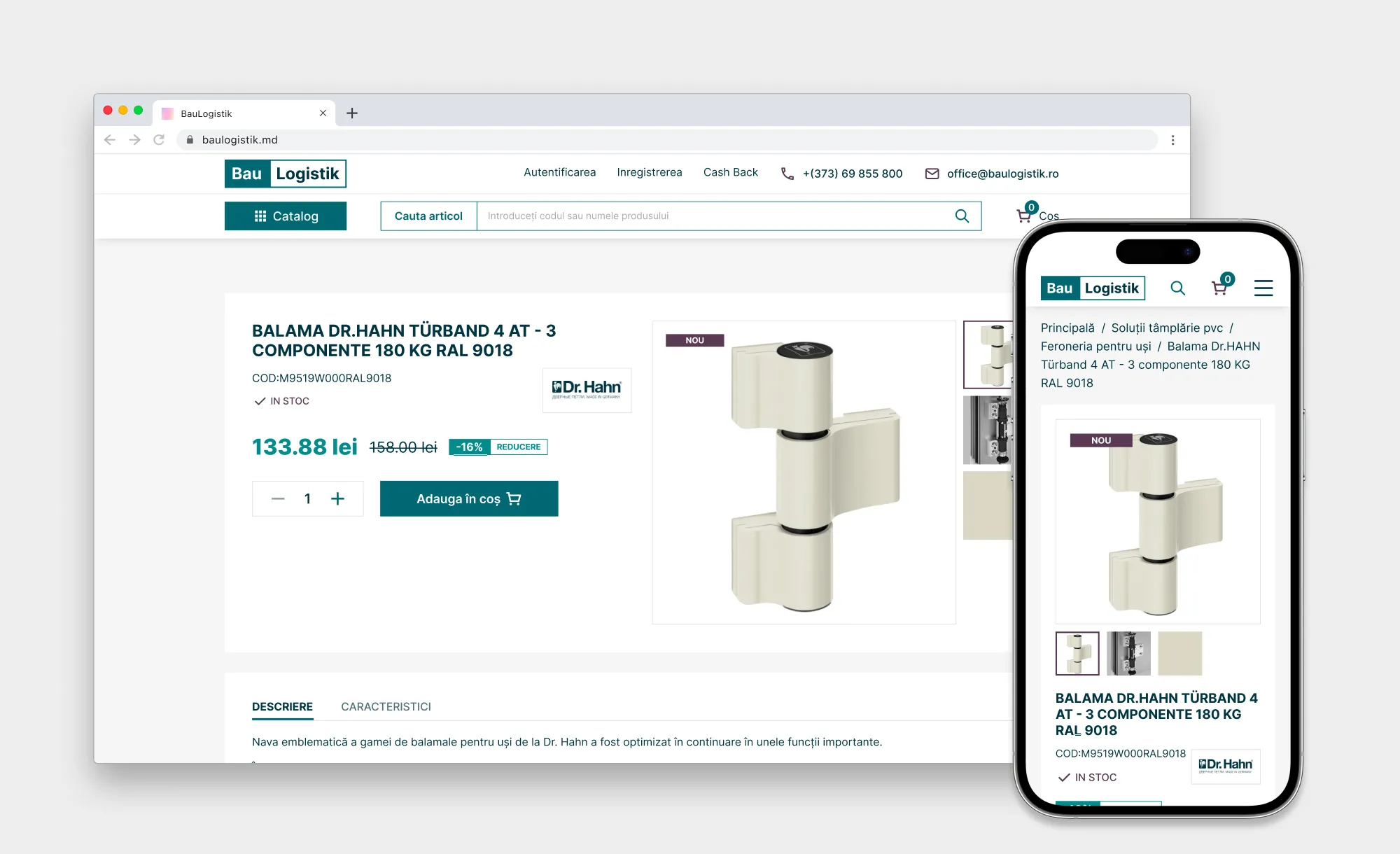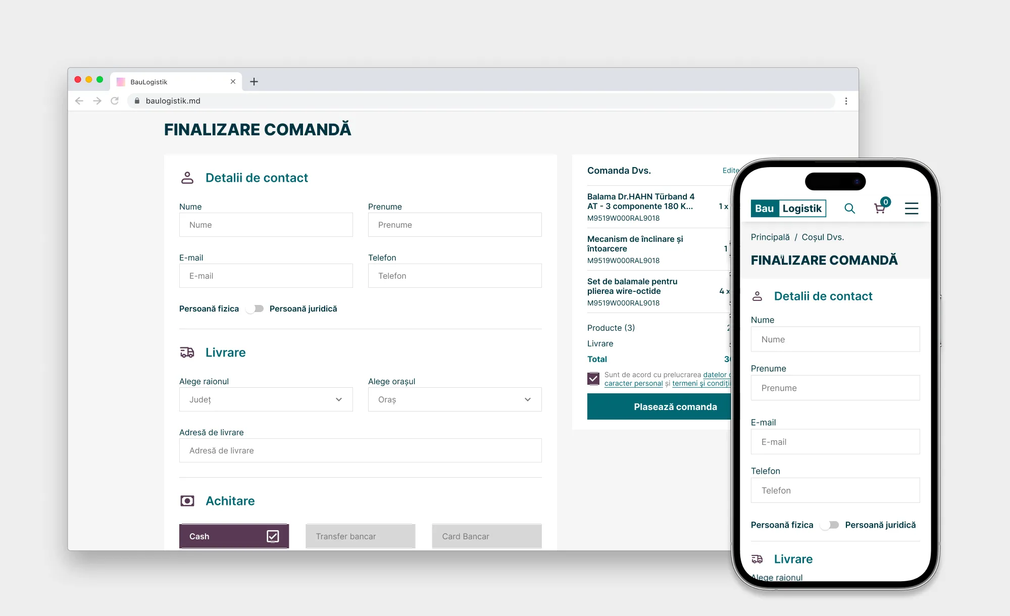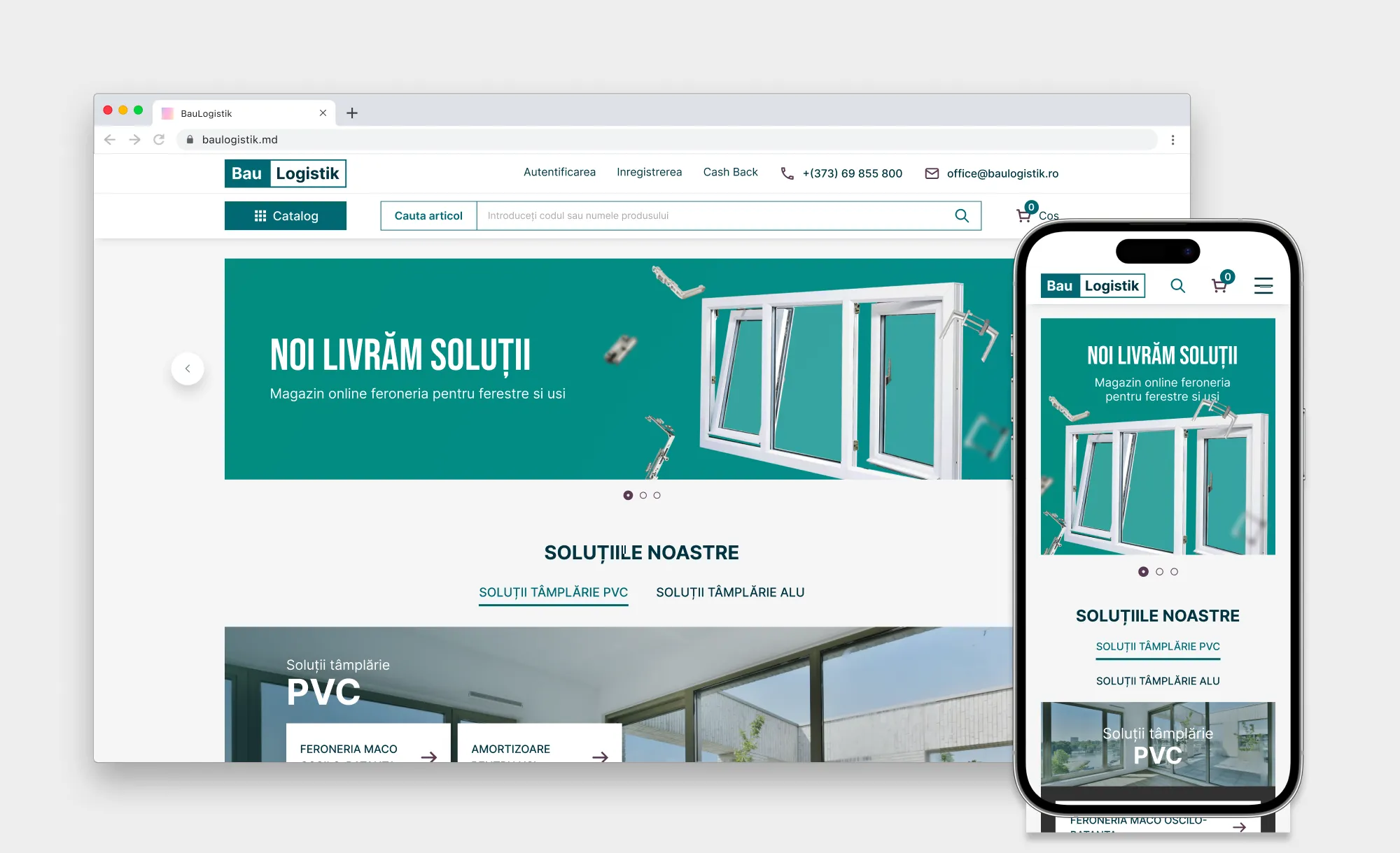 Compania BauLogistik activează pe piețele din Moldova și România, și în procesul de dezvoltare a site-ului, am ținut cont de această specificitate și am creat două versiuni regionale separate, fiecare funcționând în propria monedă.