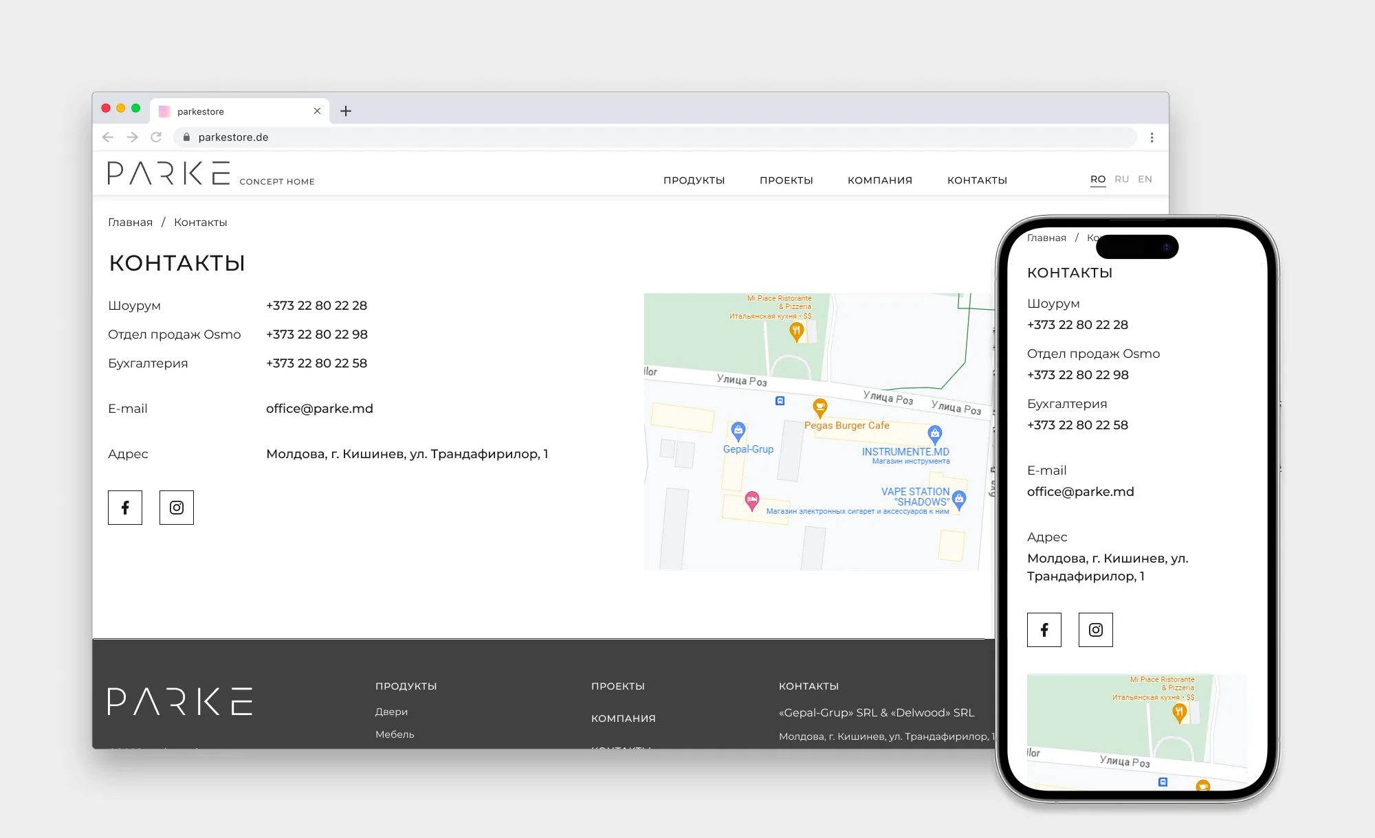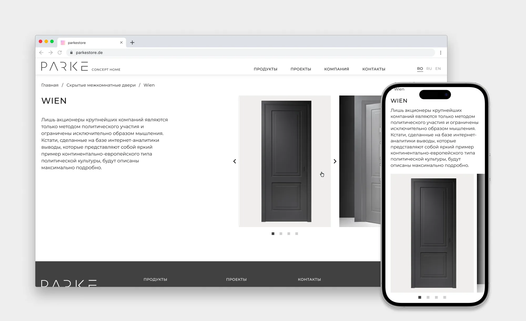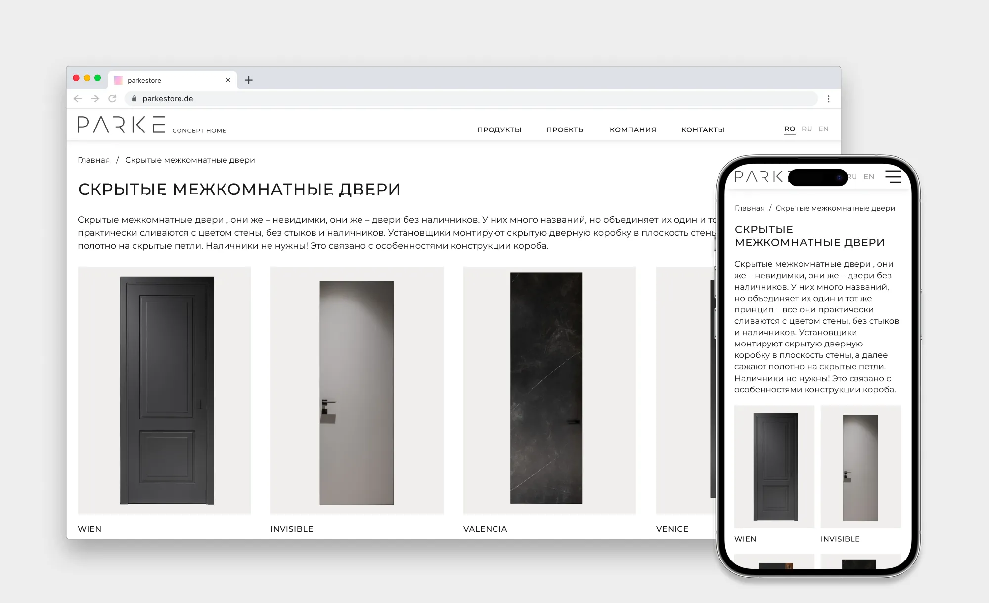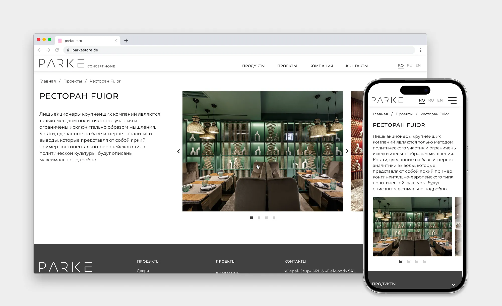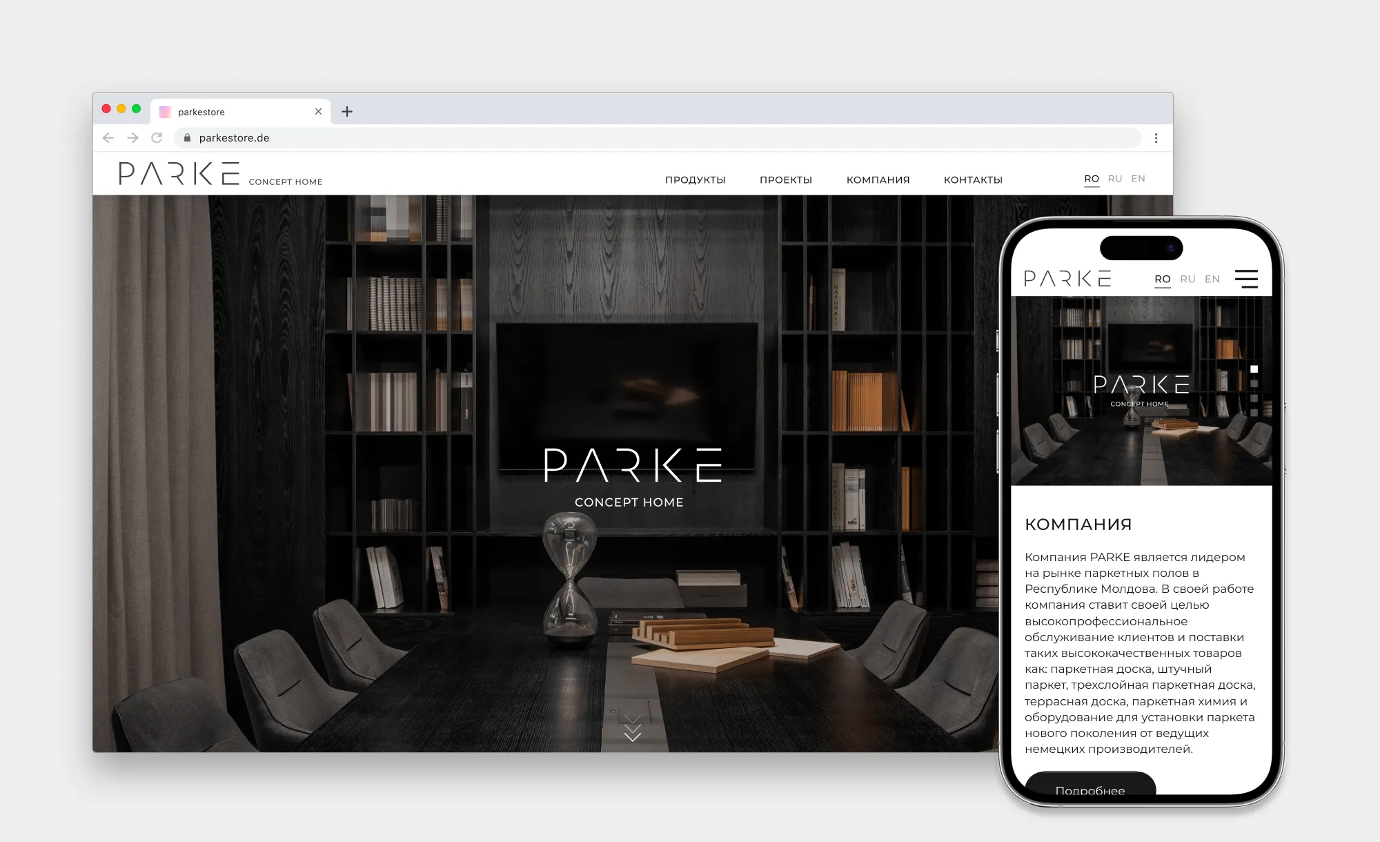 Scopul principal al site-ului Parke Store este prezentarea și comercializarea produselor pentru finisaje interioare. Una dintre sarcinile majore ale proiectului a fost transmiterea conceptului brandului și a caracterului materialelor. De aceea, în procesul de dezvoltare s-a acordat o atenție deosebită designului.