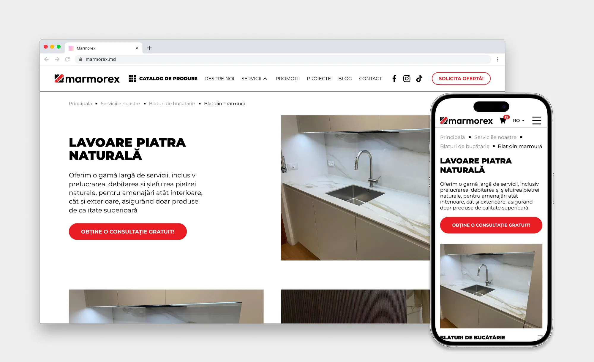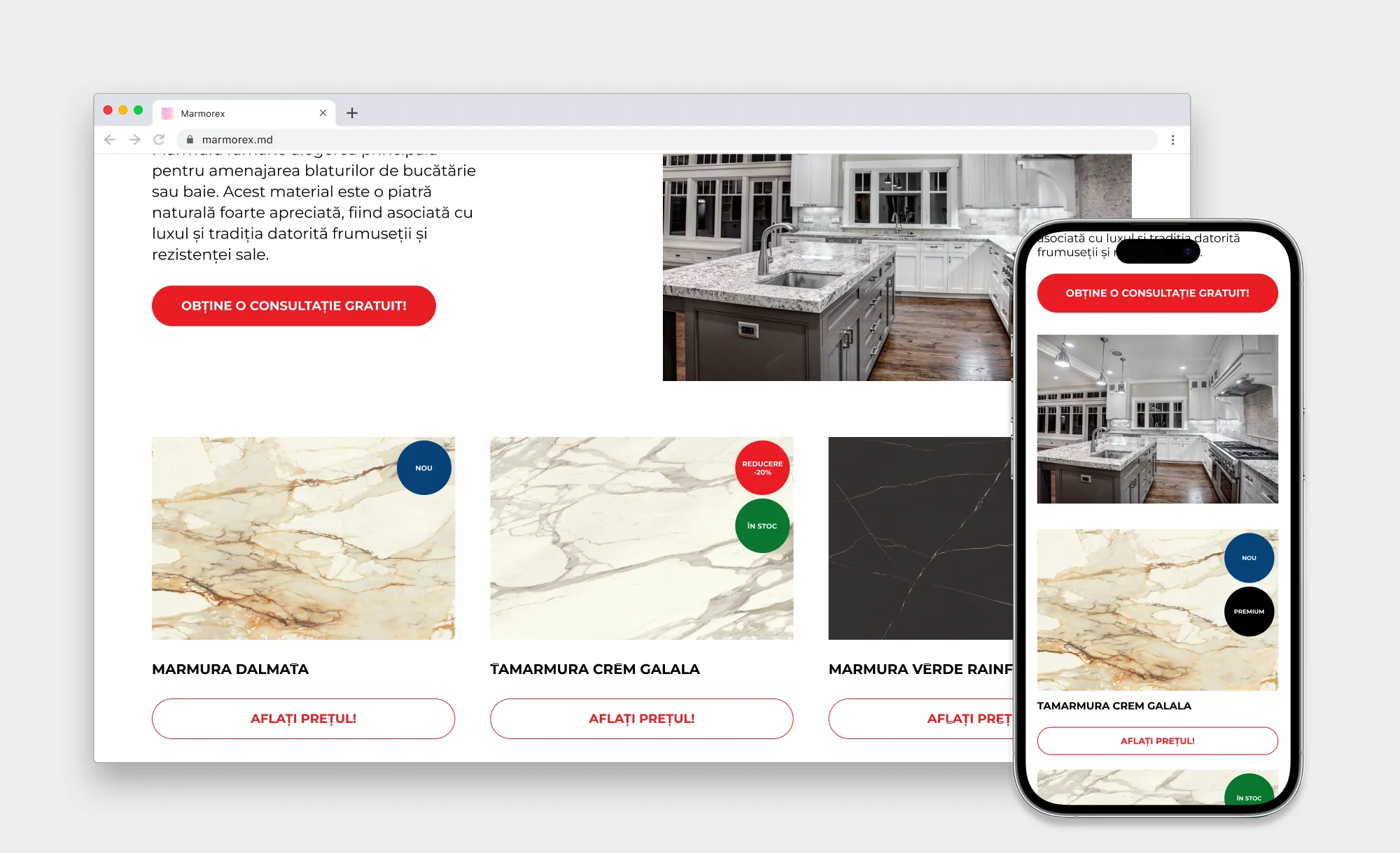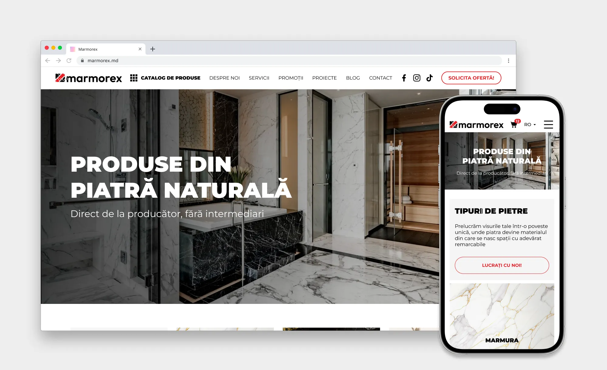 Задача: Разработать корпоративный сайт для производителя изделий из натурального и искусственного камня (рынки Румынии и Венгрии) с удобным каталогом и реализацией разных моделей ценообразования в рамках единой системы.