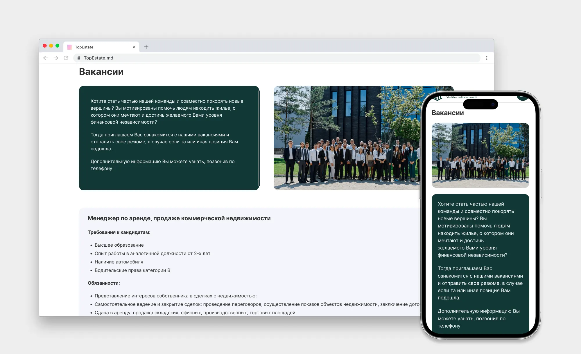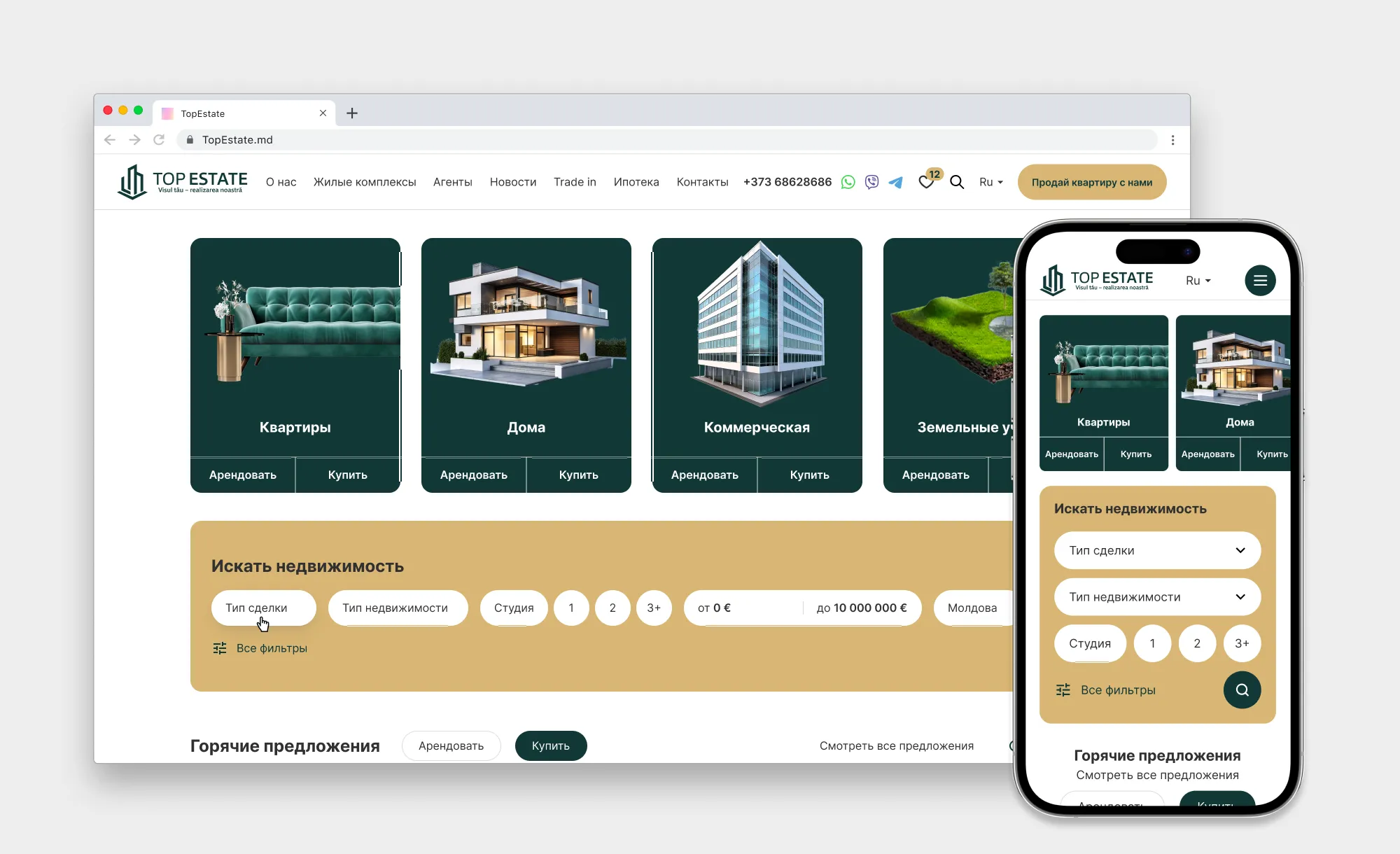 Задача: Агентство недвижимости TopEstate обратилось в нашу веб-студию с задачей обновить существующий сайт. Предыдущая версия уже работала, однако со временем интерфейс устарел, а управление объектами недвижимости было недостаточно удобным для сотрудников компании.